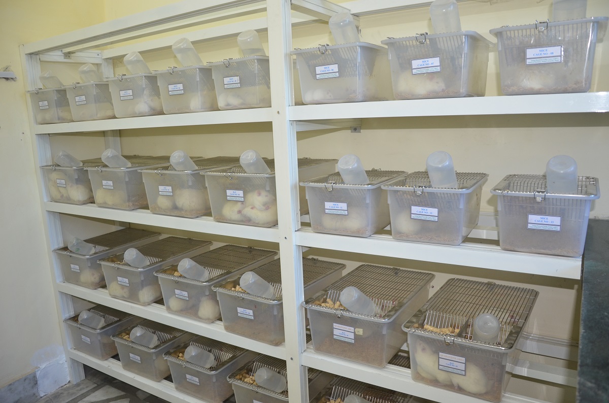Our central Animal house consists of enough experimental animals to promote research activities which include Albino rats, Albino mice, Albino rabbits, Guinea pigs etc. Central animal house was approved by Centre for the Purpose of Control and Supervision of Experiment on Animals (CPCSEA), Ministry of Environment & Forests, and Government of India. The facilities in the animal house support a healthy social environment for the animals that mimics the animal’s natural social environment useful for screening of various drug activities.